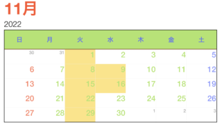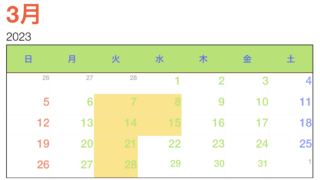 アイルのお休みを更新しました。毎週火曜日と第2.3水曜日は定休日です。