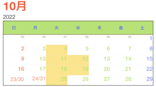 アイルのお休み 10月のお休み