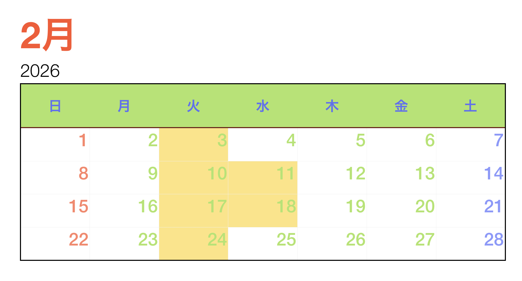 2月のお休み