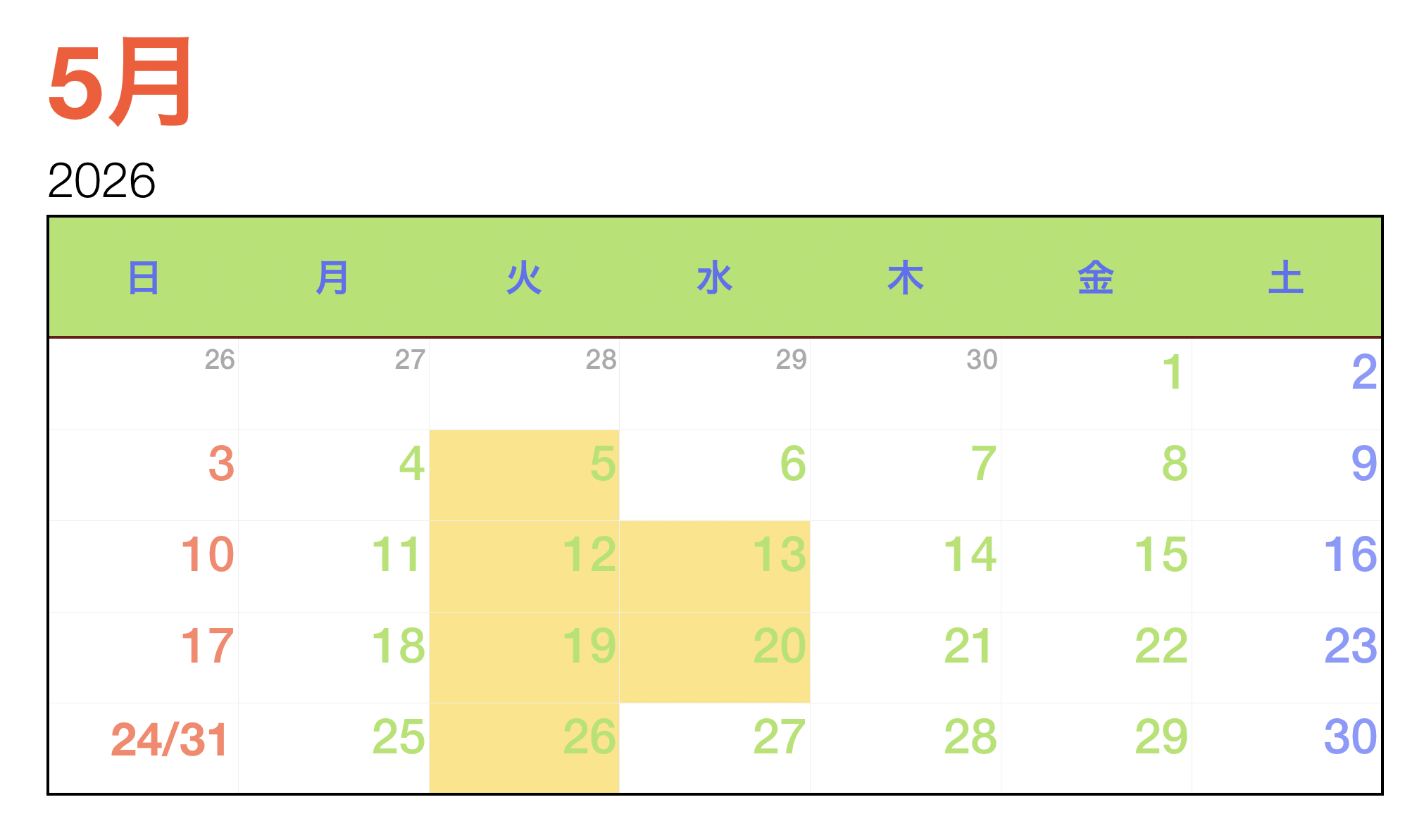 5月のお休み
